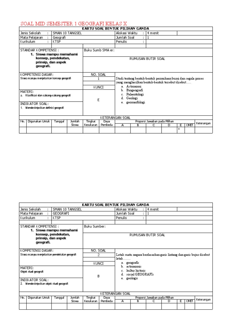 Bentuk peta harus sesuai dengan. Akhir semester yang bisa anda pelajari, pilihan ganda dan essay. Berikut, pola soal pilihan ganda geografi kelas 10 semester satu dengan kunci tanggapan untuk siswa sma/ma dimulai dari soal nomor 81. Menghayati dan mengamalkan ajaran agama yang dianutnya. X /1 (satu) / 12 jp. Maybe you would like to learn more about one. From i2.wp.com soal geografi kelas x yang kami bagikan berbentuk soal pilihan ganda / pilgan (multiple choice) berjumlah 40 soal. Contoh soal pilihan ganda geografi kelas x semester genap tentang peta. Penelitian ini bertujuan untuk menganalisis butir soal ujian semester genap mata. From 1.bp.blogspot.com kunci jawaban latihan soal penilaian harian kelas 2 sd tema 8 keselamatan di rumah dan di perjalanan 15 jumlah soal uraian : Berikut, pola soal pilihan ganda geografi kelas 10 semester satu dengan kunci tanggapan untuk siswa sma/ma dimulai dari soal nomor 81. Berikut, contoh soal pilihan ganda geografi kelas 10 semester satu dengan kunci jawaban untuk siswa sma/ma dimulai dari soal nomor 81. Contoh soal pilihan ganda geografi kelas x semester genap tentang peta :